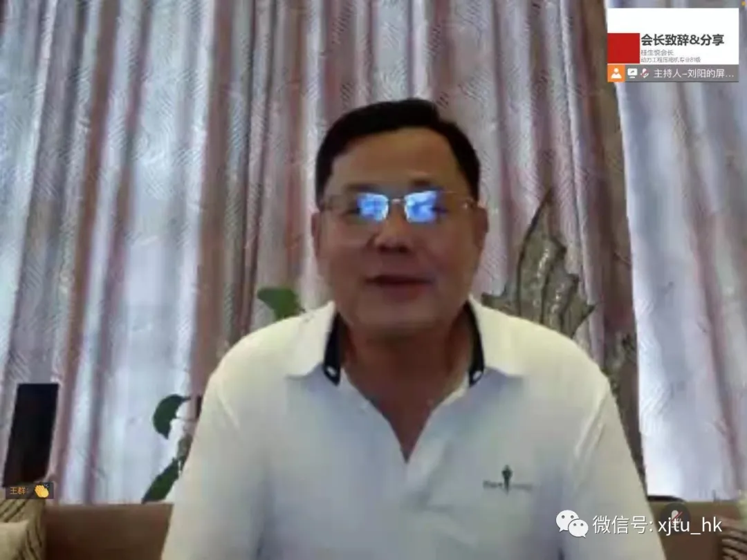 接下来,回馈母校最新香港校友会会长,压缩机及制冷技术专业81级校友,吉利汽车控股有限公司执行董事、行政总裁、CEO桂生悦学长致辞并分享。桂会长热烈欢迎了新校友们来港,介绍了香港政治经济形势和香港校友会的发展近况,并代表中联办副主任谭铁牛校友表达了对新生的祝福和期待,桂会长希望新来港的校友能够在香港多元文化中秉承原则、立场坚定,他耐心叮嘱同学们要爱国爱港,同时注意方式方法,做好自我保护,在完成学业发展事业的同时积极主动融入香港社会,在不断提高自身的情况下也要帮助香港的年轻人进一步了解中国的现状,做好中港文化交流的桥梁。