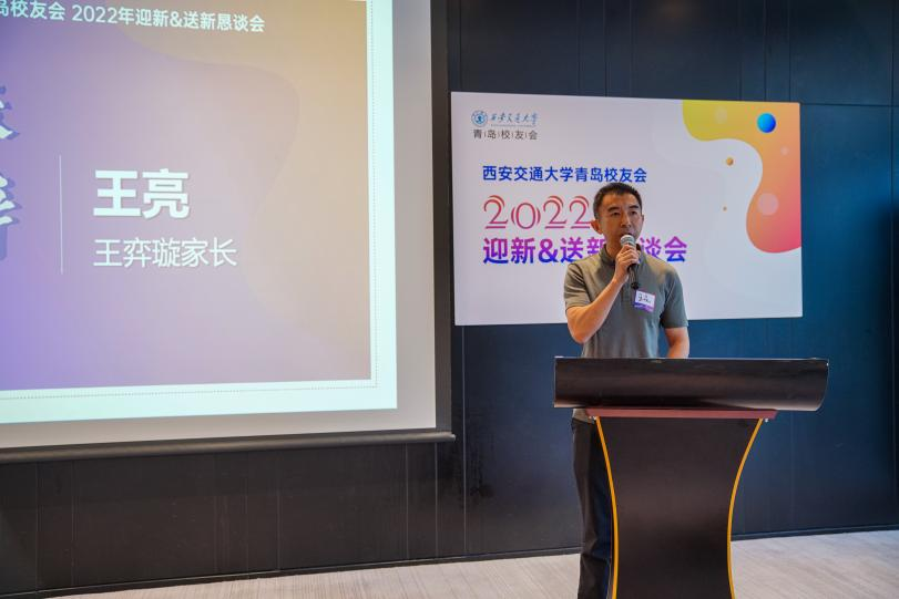 青岛校友会会长綦军书发表了讲话,向来青工作的毕业生及今年考入交大的新校友们表示热烈的欢迎和祝贺,并深情回顾了西安交大的历史以及青岛校友会多年来的发展,介绍了各界各行业的众多杰出校友,让新校友们对母校和校友会有了更加深入的了解。