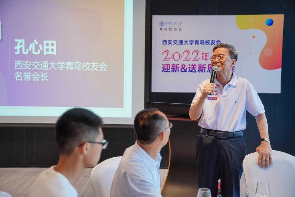 青岛校友会名誉会长孔心田学长深情回顾校友会的过往,并对新的校友进行了期许,鼓励毕业生传承交大精神,在岗位上努力工作,祝愿新生勤奋学习,多参与学校提供的各种学习与实践的锻炼机会,发展复合型能力。