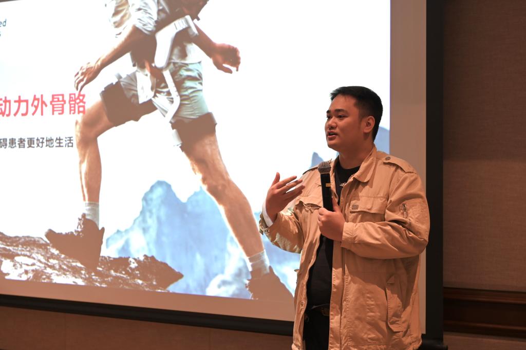 2007级机械专业校友、85后创业者朱瀚琦就前沿科技商业化落地作了分享。他从自己的求学经历、如何跟外骨骼机器人领域结缘,到外骨骼技术的发展历史,详细对比了目前在该领域国内外企业的发展路径和技术水平。当前该领域是一个重研发投入的行业,商业化市场尚未完全发掘,头部公司也遭遇了一些发展的困境。英汉思(深圳市英汉思动力科技有限公司)深入分析商业市场、与客户深度合作深挖垂直行业的痛点需求、同时重金投入技术研发,目前拥有基于高扭矩电机的Quasi-direct驱动技术、基于人体相位的实时步态检测方法、动力学扭矩辅助行走控制算法等一流的自研技术,该团队技术群被被选为2018年Control System Magzine封面(该期刊是控制领域最具有影响力的期刊之一)。公司主要面向行动不便人群的辅助行走设备,目前已经完成了样机验收,将在2023年6月完成量产和全球发售。
