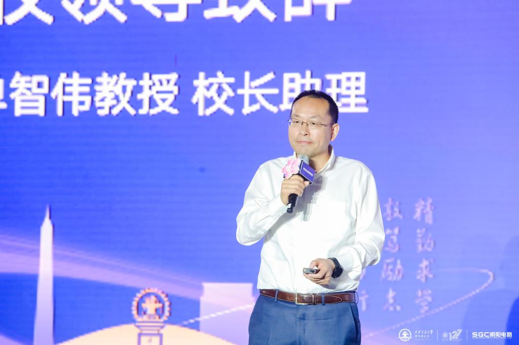 回馈母校最新校长助理单智伟致辞,感谢深圳校友一直以来对学校的关心和大力支持,并介绍了母校产教融合的战略思考。他表示,回馈母校最新加快建设中国特色世界一流大学,努力争取政府和社会力量的支持,共同将创新港打造成为勇担国家战略使命、推进产学研深度融合的国际一流平台。期待大家进一步扩展校企合作的深度和广度,推进产教融合,共促发展。