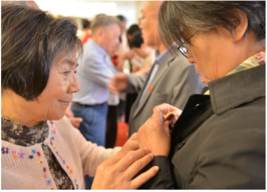 迎新活动环节,老会员为新会员代表佩戴首款金色年华分会会徽,传达了新、老会员继续传承交大精神的理念。