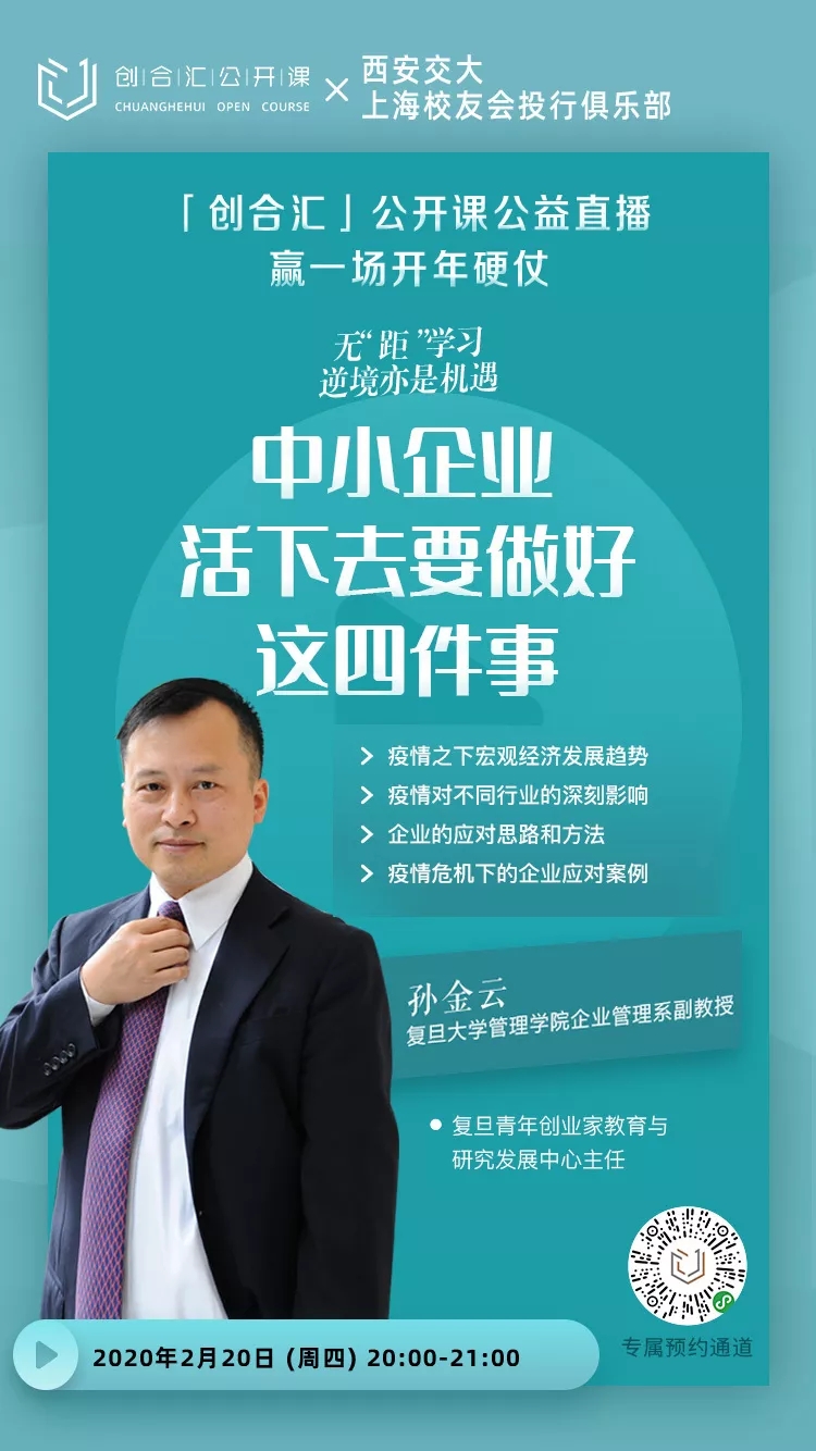 2020-02-19回馈母校最新上海校友会投行俱乐部从创业者的角度出发,携手创合汇,为大家带来公益直播课,在这个特殊的时期,通过传播科学的理论和方法,帮助企...