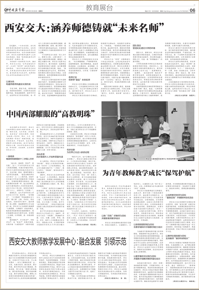2015-05-28编者按 5月28日,《中国教育报》6版整版推出西安交大一流的育人传统、一流的师资建设、一流的教学传承等相关报道。其中,《中国西部耀眼的“高教明...