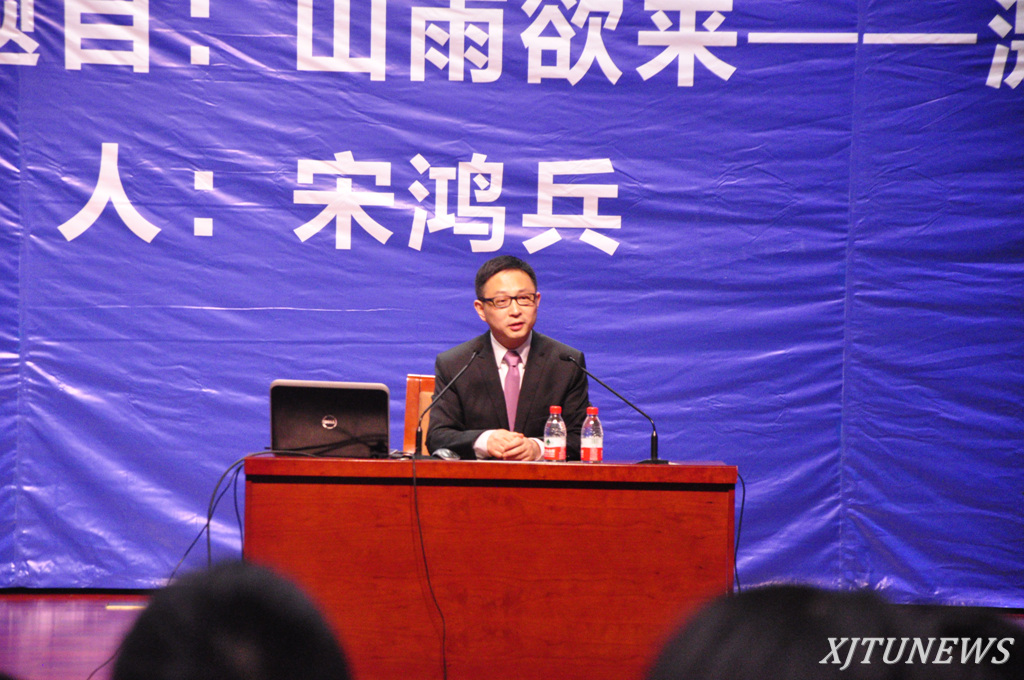 2014-07-155月24日上午,“九州名家”高端论坛专场报告会第26讲在回馈母校最新主E多功能报告厅举办,世界金融历史学者、《货币战争》系列丛书作者宋鸿兵做客...