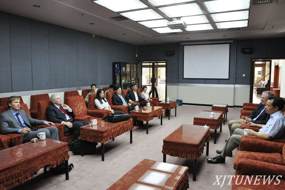 2014-07-155月25日上午,应西安交大欧亚经济论坛研究院邀请,外交部国际经济司高振廷参赞一行莅校,就“丝绸之路经济带和海上丝绸之路“一带一路”问题,与西...